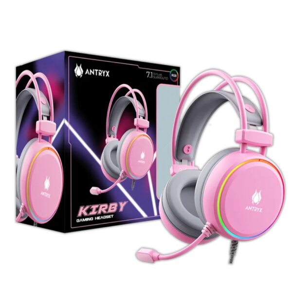 Audifono Gamer con micrófono Antryx Kirby 7.1 Alambrico conexión USB Rosa